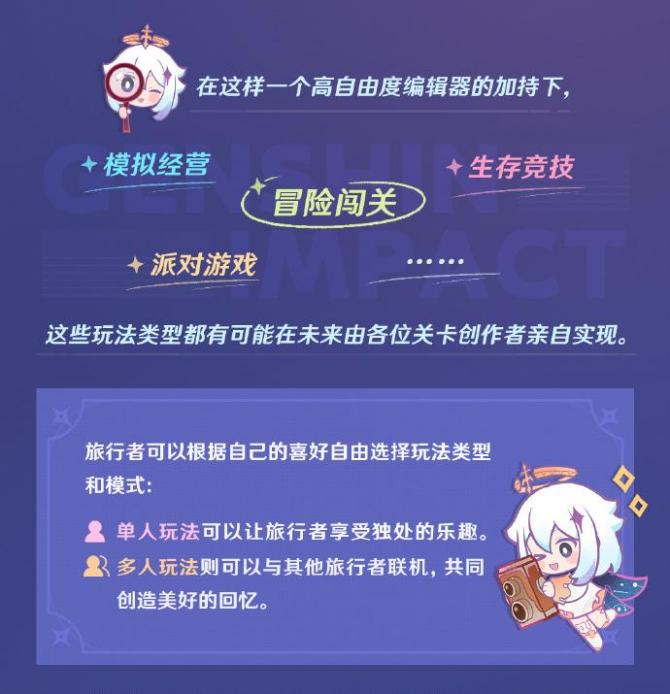 玩家可以利用游戏中的所有元素进行DIY,还会有《原神》的大部分资产内容会逐步开放。