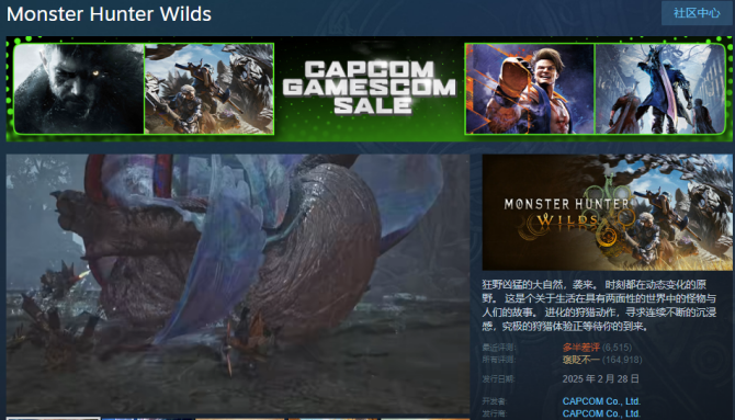 《怪物猎人:荒野》自从2月28号发售之后,Steam上就出现了一片“差评如潮”的评论