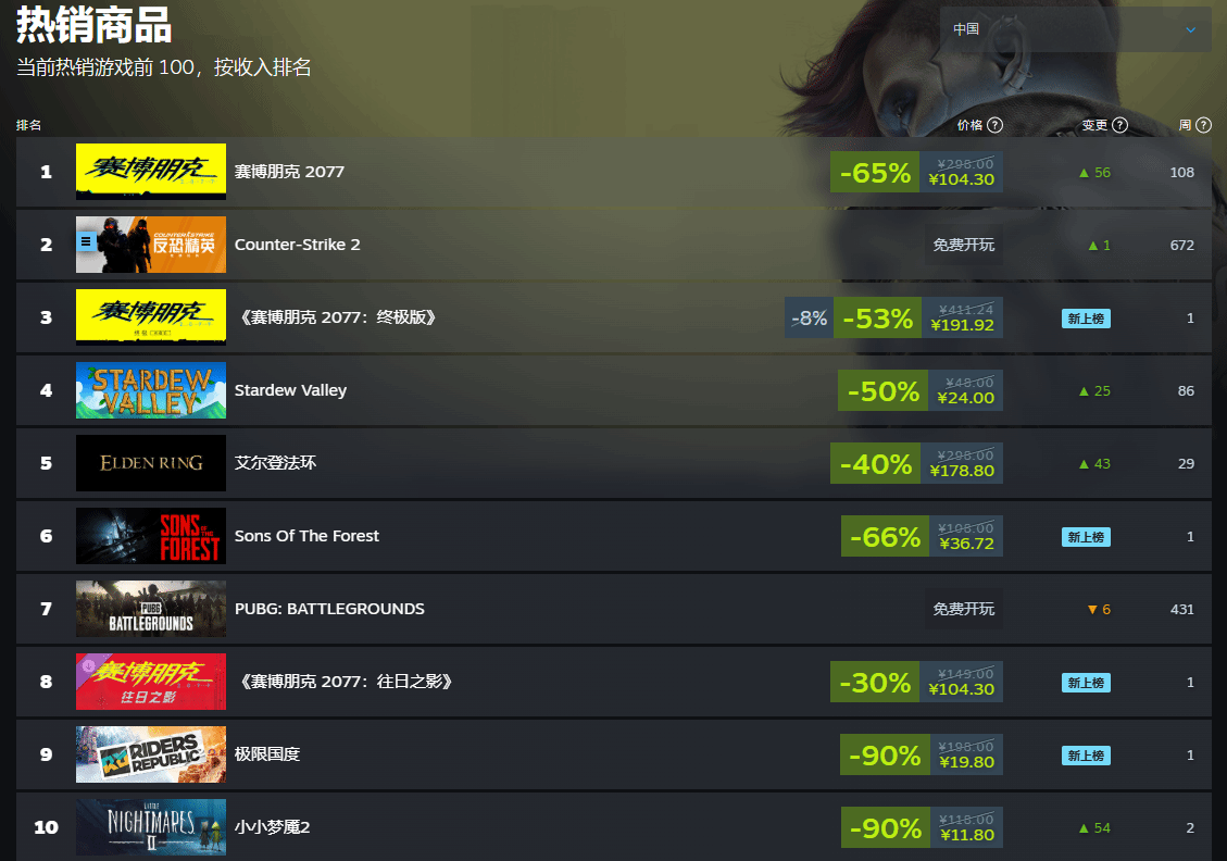 家人们,Steam 夏促刚一开锣,游戏圈就被《赛博朋克 2077》刷屏了!凭借这波骨折价,直接把游戏送上了 Steam 全球与国区热销榜双冠军宝座,这波热度,属实拿捏住了!