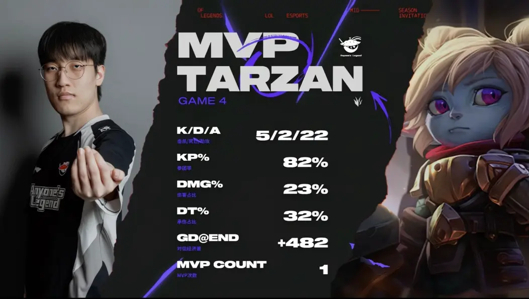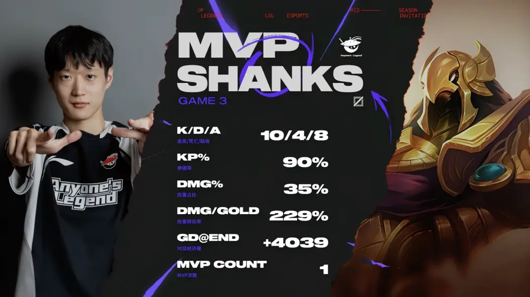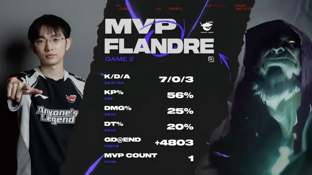 决胜局里,AL 更是不给 FLY 一点机会!下路 Hope 卢锡安线杀拿一血,Shanks 的阿萝拉斩获三杀,Tarzan 的波比壁咚、打断操作拉满,团战中 Flandre 的安蓓萨多次关键开团,直接把 FLY 后排融化。最终 AL 打出团灭,一波推平基地,成功晋级!