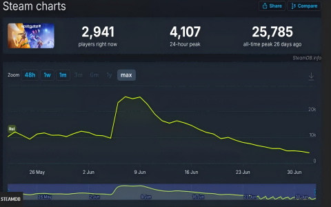 回溯至6月7日游戏首发之时,《分裂之门2》凭借新颖的玩法与前期宣传,成功吸引了大批玩家涌入,Steam平台的平均在线玩家数量一度攀升至2.5万人,开局成绩颇为亮眼。然而,仅仅一个月过去,根据实际监测数据,游戏的活跃玩家数已滑落至5000人左右,热度的衰退速度令人咋舌。