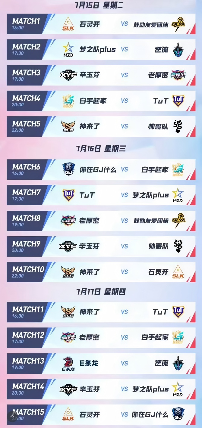 一起来看看本周的赛程安排吧!