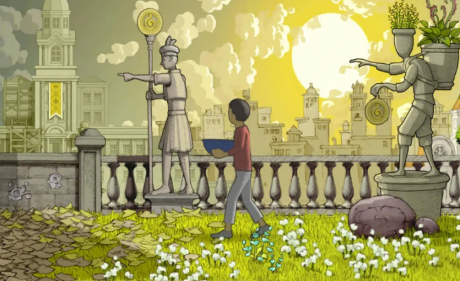 没文字没对话,全靠拼画面解谜。一张图拆成几块,你挪挪这个框、放大那个角,让裂开的桥接上,让飞着的鸟衔走钥匙,拼对了剧情就可以往前走。有时候盯着一幅画看半小时,突然想通的那一刻,像解开一道数学压轴题一样,这种“无声的解谜”特别让人上头。