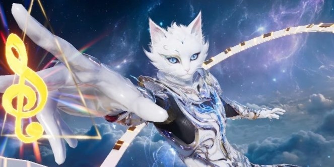 形态突破:首套人猫双形态切换,白猫优雅(蓝宝石披风)、黑猫战意(金色烈焰);飞行器可变身猫咪踏乐谱阶梯,M416枪身带音乐密码互动。